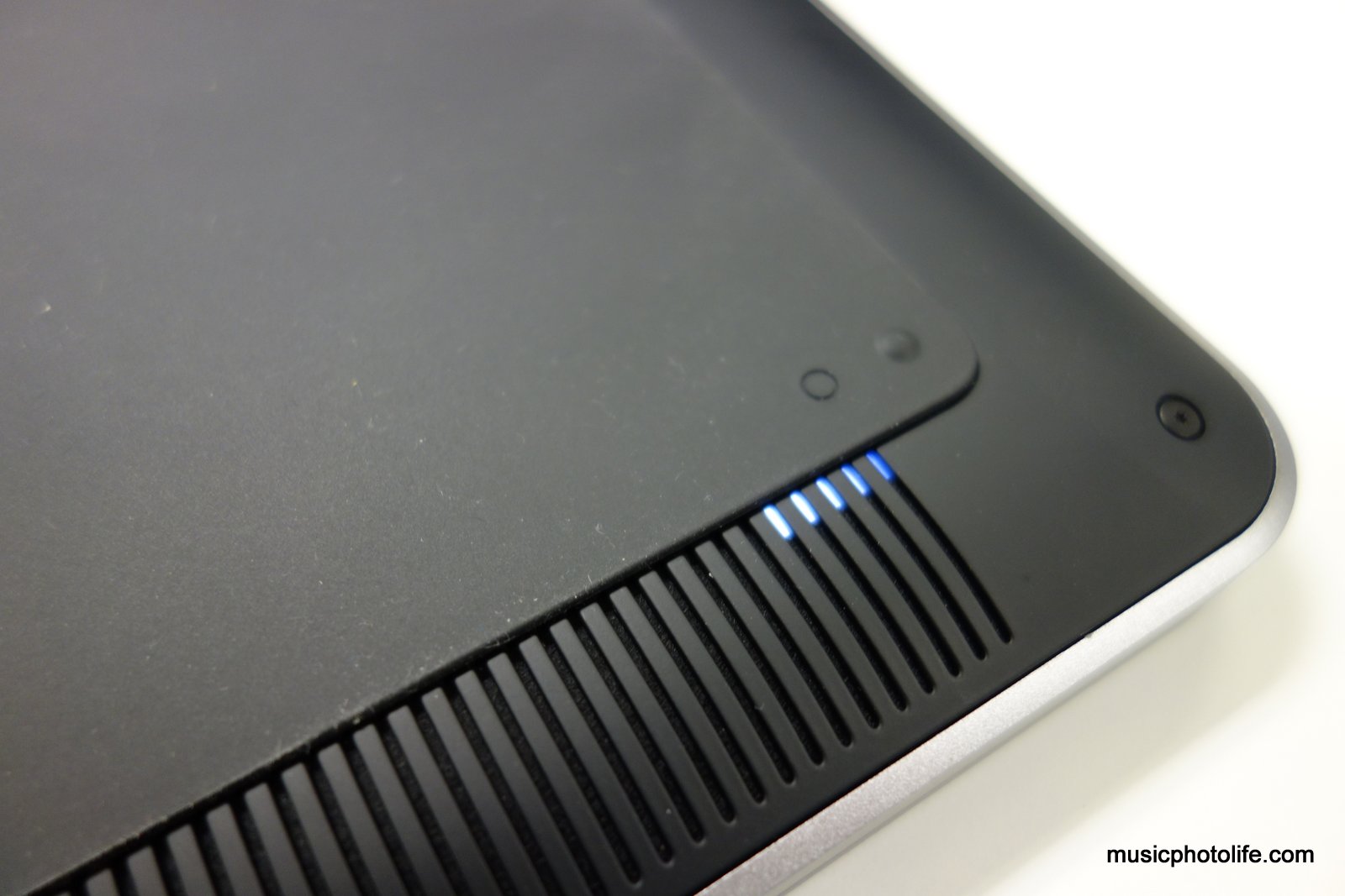 The sound quality is impressive for a laptop. The XPS 14 audio driver powered by Wave MAXXAudio allows user to tweak the speakers to produce sounds with clear treble and firm bass. The keyboard actions are accurate and firm, and I can achieve a quiet typing response. The screen is very bright at 400 nits, its colour tone appears quite pleasant though still not gamma-accurate, and images appear so sharp that I notice more pixelation than I would on other monitors.