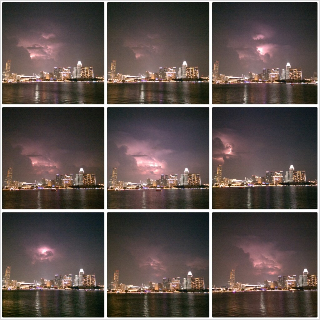 | Multiples of continuous shot allows me to pick my favourite lightning images over Singapore Marina Bay skyline. |